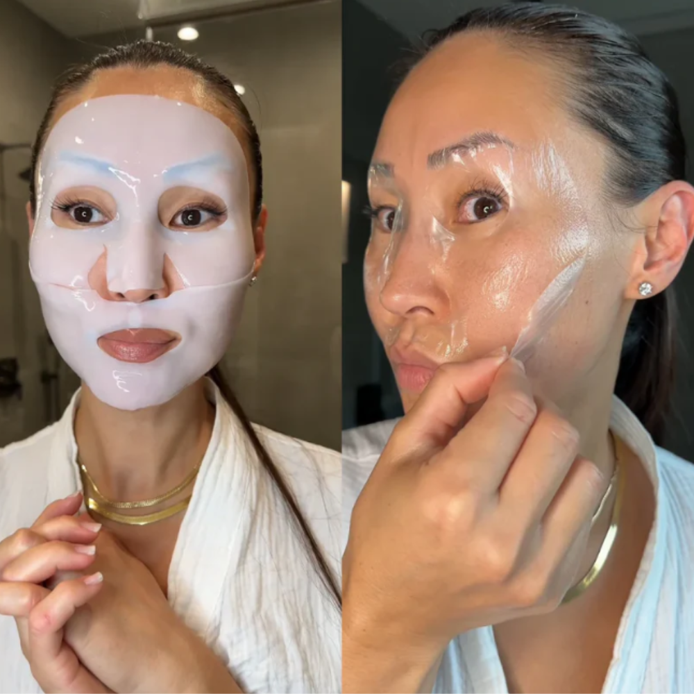 Die Maske besteht aus Hydrogel, das sich während des Tragens verändert, weil die Haut die wertvollen Inhaltsstoffe aufnimmt. Dadurch wird die Wirkung der Maske verstärkt und deine Haut erhält die bestmögliche Pflege.