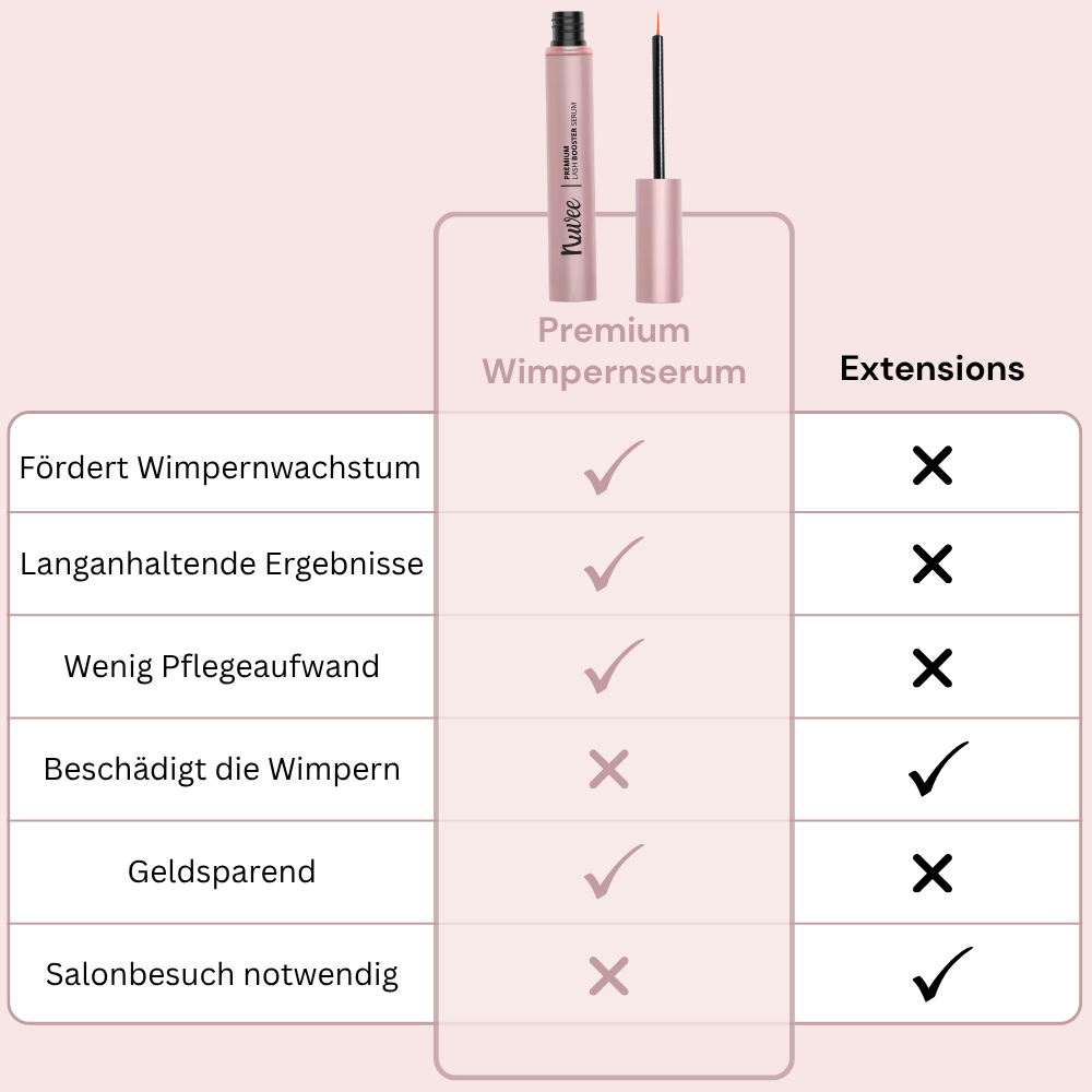 Unser Premium Wimpernserum wurde gemeinsam mit Dermatologen entwickelt, um deine natürlichen Wimpern von der Wurzel an zu nähren, zu stärken und das Wachstum zu fördern. So erreichst du Länge und Fülle, die du bisher nur mit Wimpernverlängerungen für möglich gehalten hast.